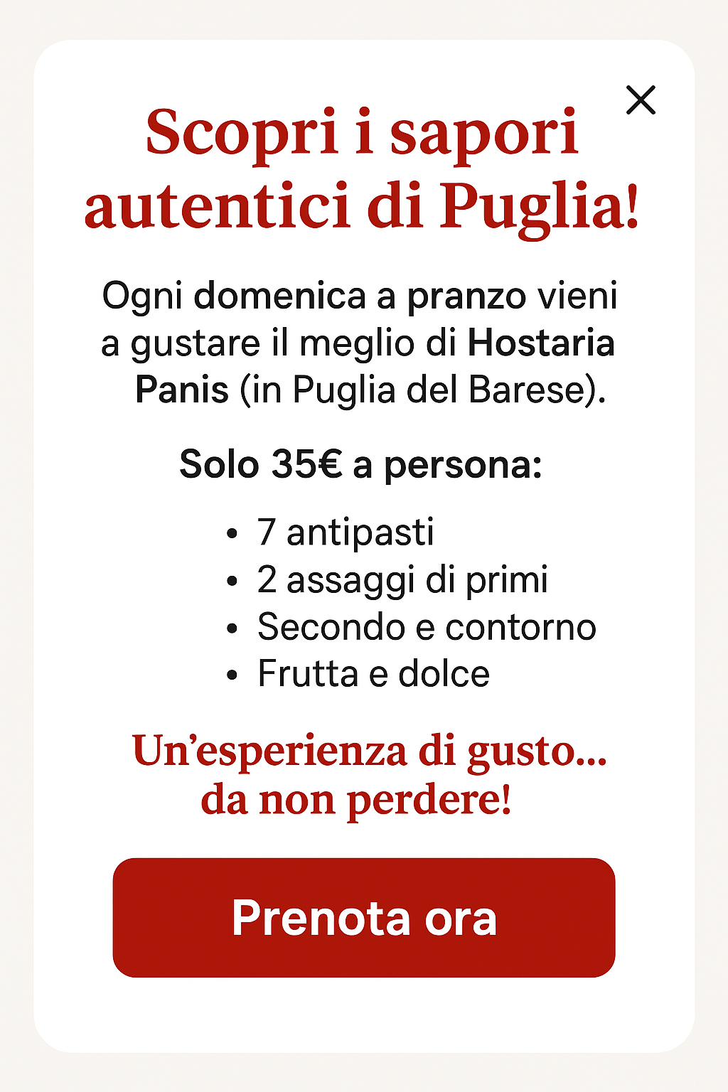 Scoprite il sapore della tradizione con Hostaria Panis in Puglia, dove ogni morso racconta la storia di una terra ricca di gusto.